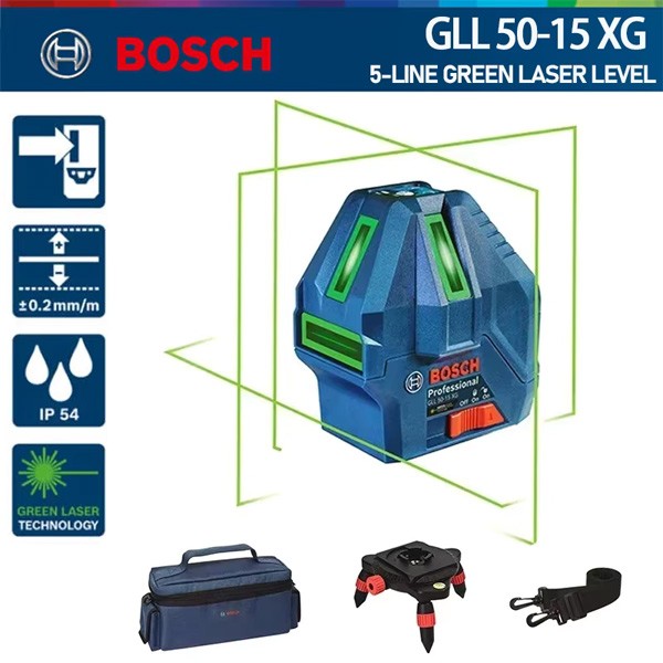Bosch GLL 50-15 XG là dụng cụ đo được thiết kế để xác định và kiểm tra các đường ngang dọc cũng như các điểm vuông với độ chính xác cao. Giải pháp vượt trội cho các nhu cầu sửa chữa lắp đặt thi công trong ngành xây dựng, cải tạo nội thất, điện nước… nhờ vào việc cung cấp đầy đủ các giá trị cần thiết cho công việc đo đạc, căn chỉnh hay lấy thăng bằng. Nổi bật với công nghệ laser xanh lá cung cấp khả năng nhìn rõ hơn đến bốn lần so với tia laser đỏ, đảm bảo kết quả tuyệt vời cả trong điều kiện ánh sáng chói.
