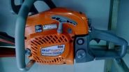 Lưu ý! Hãy kéo phanh tay về phía tay cầm, nếu không thực hiên thao tác này sẽ cháy chén côn và các bộ phận gần chúng. Cưa xích đã sẳn sàng để sử dụng.