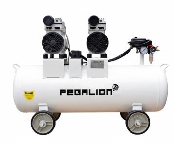 Máy nén khí không dầu Pegalion công từ 3/HP đến 6HP, dung tích bình chứa từ 40 lít đến 300 lít cho ra lượng khí sạch không mùi dầu được sử dụng chủ yếu trong bệnh viện, cơ sở y tế, phòng thí nghiệm điện, cơ sở nghiên cứu khoa học, cơ sở chế biến thực phẩm, đồ ăn uống, nhà hàng, quán bia...Máy nén khí không dầu có 2 loại, 1 loại thường và 1 loại giảm âm (độ ồn thấp). Máy nén khí không dầu thường có độ bền và tuổi thọ thấp hơn máy nén khí có dầu.
