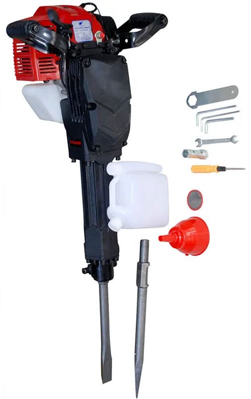 Máy đục bê tông sử dụng nhiên liệu xăng pha nhớt nên tính di động cao, làm việc được ở bất kỳ đâu.